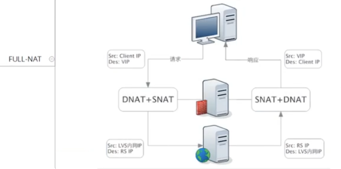 • FULL - NAT 模式,真实主机(RS) 可以不在同一网络(跨网)