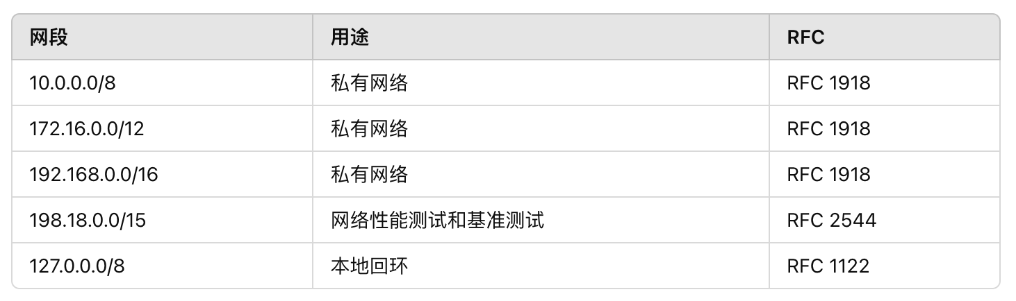 常见的特殊保留网段( 内网地址 / 保留网络 )