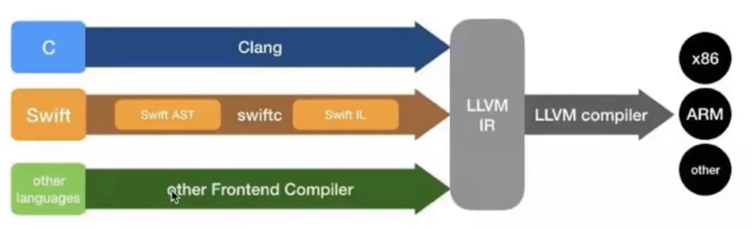生成LLVM IR代码:swiftc -emit-ir main.swift -o main.ll
