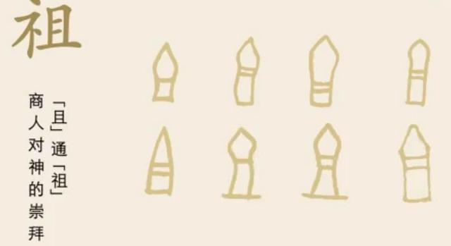 甲骨文: 且通祖,商朝人对神的崇拜。