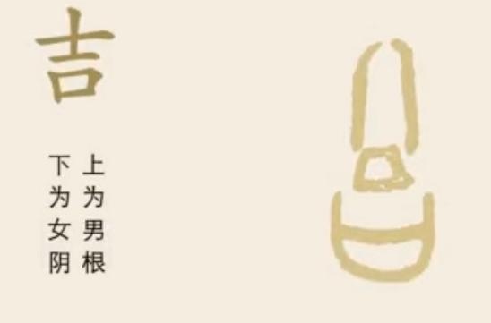 甲骨文: 吉:男女结合是为吉,上为男根,下为女阴。吉祥、吉利、吉日、吉时、吉服。