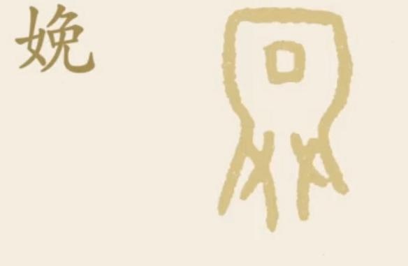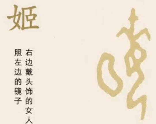甲骨文:姬:右边带头饰的女人,照左边的镜子