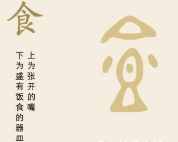 甲骨文: 食:上为张开的嘴,下为盛有饭食的器皿