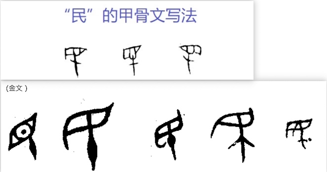 “民”字在甲骨文中看似头戴枷锁的人,同时也像眼睛被刺的人,所以古代的“民”极有可能是为统治者服务的,与牛马无异。 而“人,天地之性最贵者也”,“人”和“民”是不同的,所谓“一人有庆,兆民赖之”,作为“域中四大”的“人”,自然应该区别于眼睛蒙蔽的“民”,区别于供人驱策的牛马。 这也是为什么《道德经》里有些版本是的“域中四大”是“人”,有些版本的却是“王”,大概是担心人们错把“人”理解成“民”吧,值得追究!只有统治者才是“人”,被统治者充其量只算“民”。