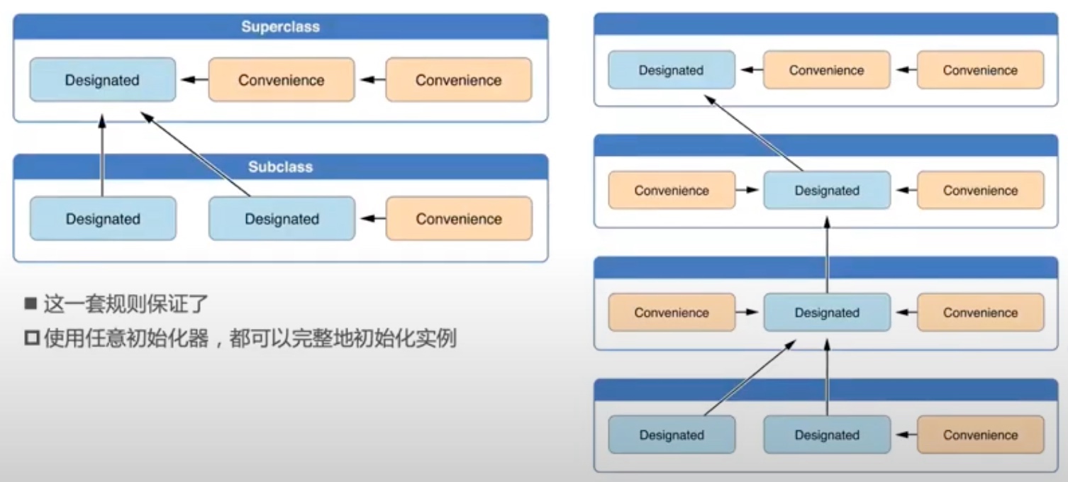 - 就算子类添加了更多的便捷初始化器,这些规则仍然适用