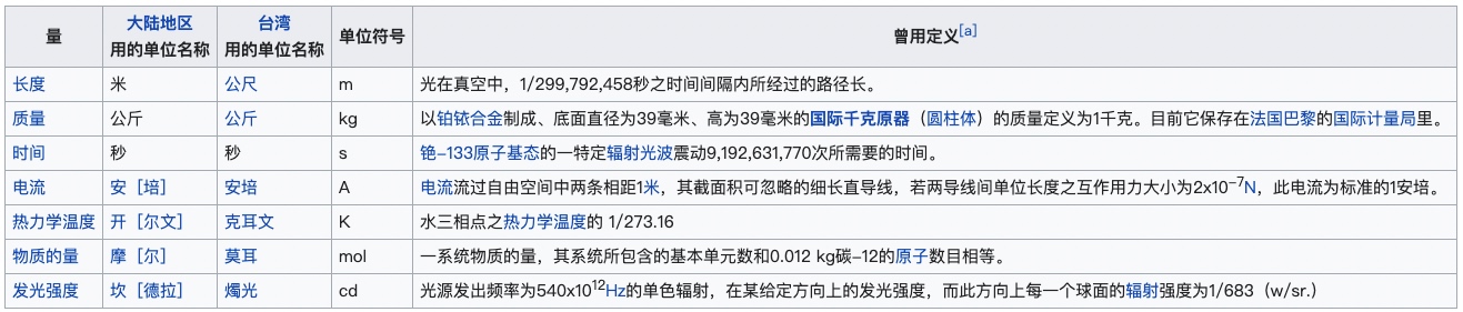 七个“基本物理量”
