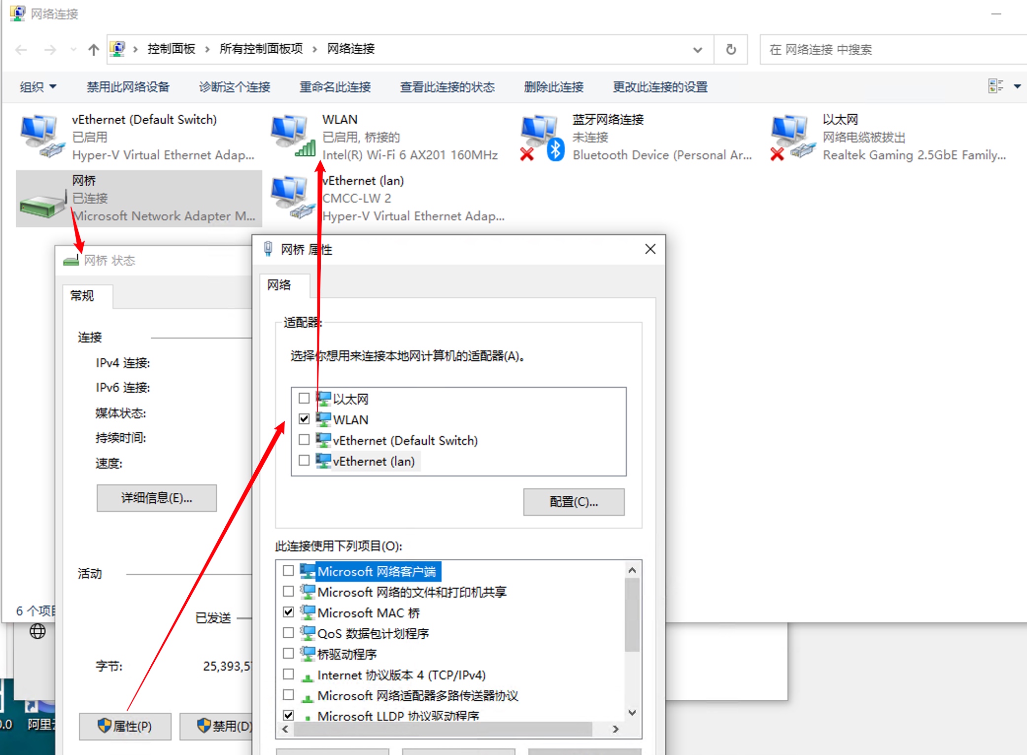 在虚拟交换机管理器中添加一个名为lan的虚拟网卡,映射到物理的Wifi无线网卡,这个过程会在windows的网络适配器中自动添加一个网桥联通到WL
