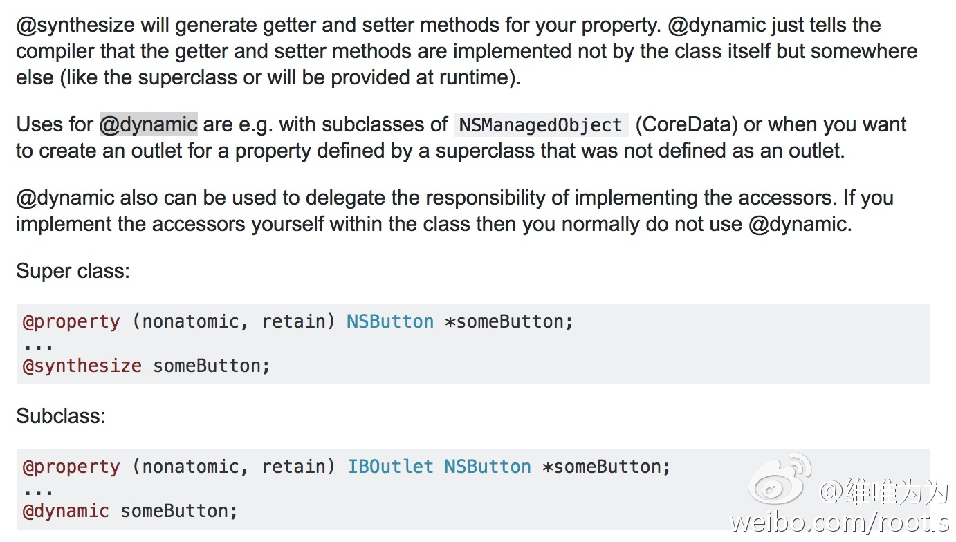 基础知识点回顾:iOS中@synthesize 与 @dynamic区别