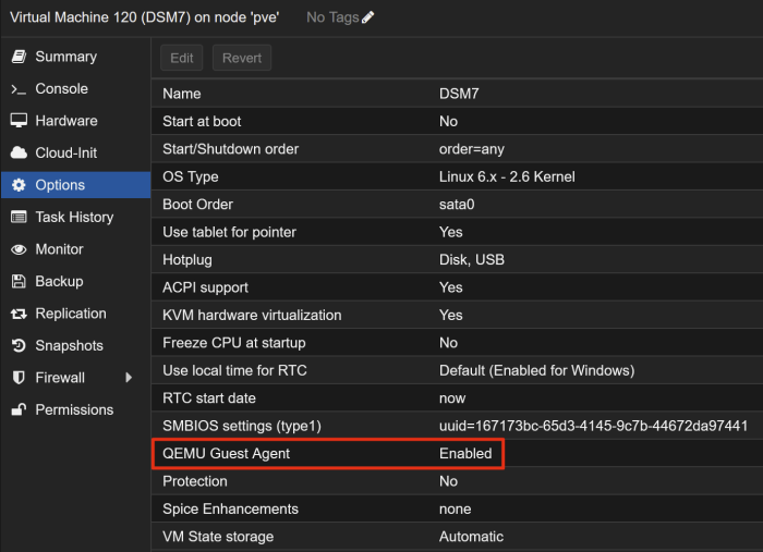 PVE 中 Synology 群晖 虚拟机VM 的 Qemu Agent的设置