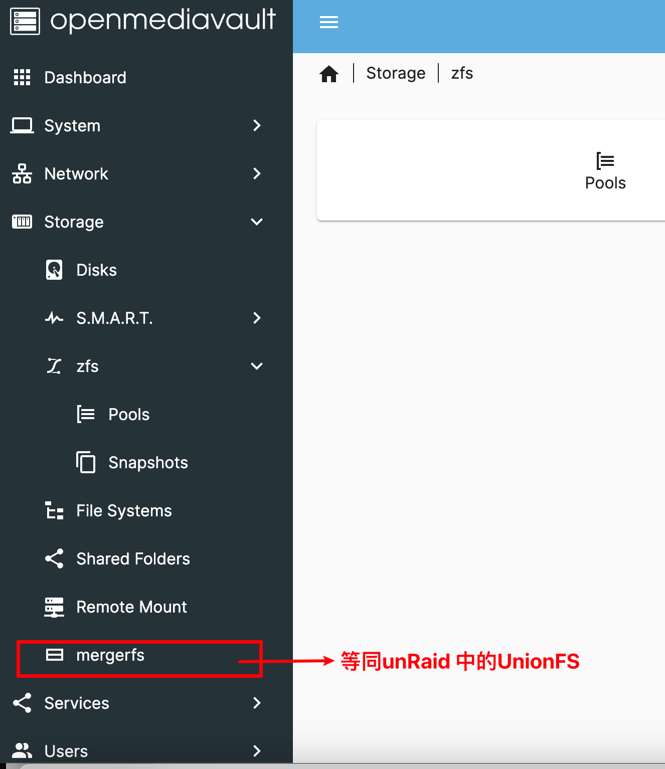 在 OpenMediaVault 上使用 SnapRAID 和 MergerFS 对比 unRAID 中的带 Parity 的 Array 应该就是 UnionFS(MergerFS) 与 SnapRAID 的结合体.