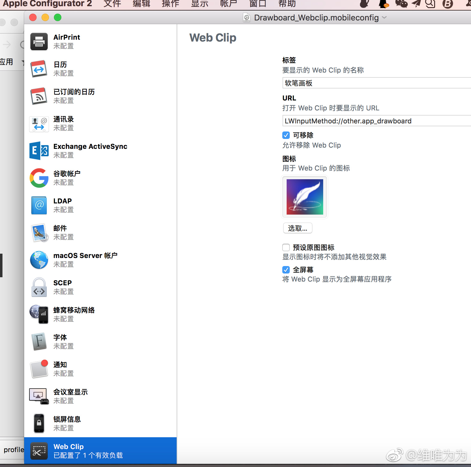 使用Apple Configurator配置Webclip