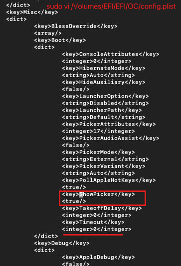 sudo vi /Volumes/EFI/EFI/OC/config.plist