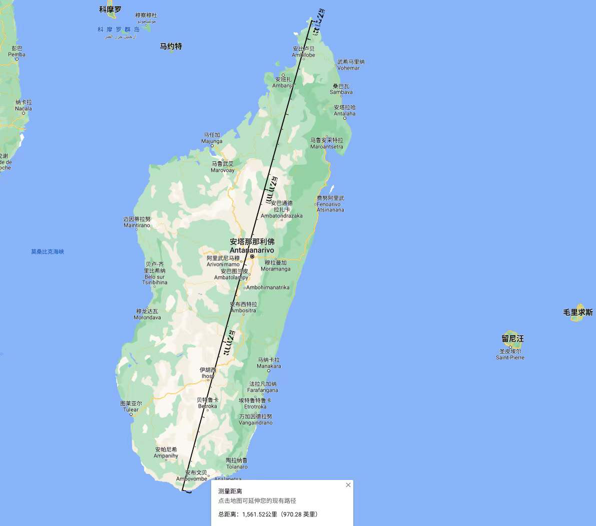 之前没想到的是马达加斯加的动物及原住民与南岛诸多同源,现在没想到的是马达加斯加竟然有这么大。